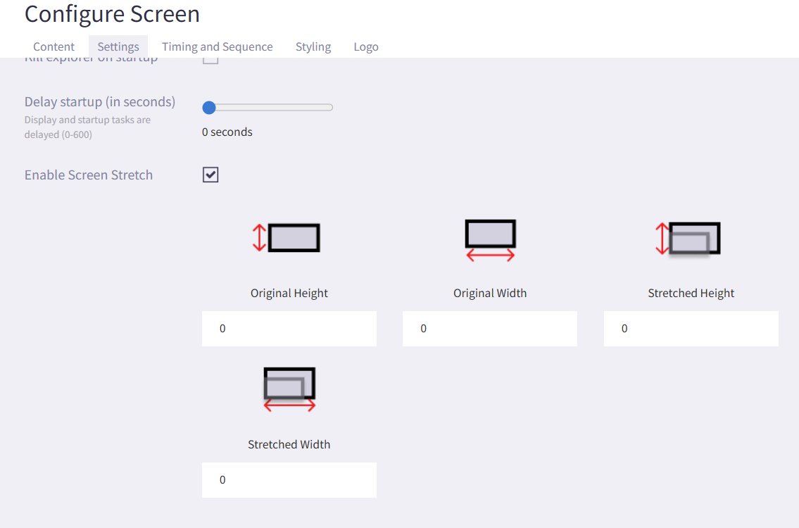 - In the Settings tab you can enable and configure screen scaling.